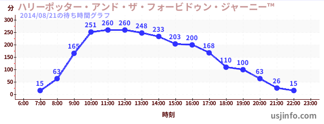 • ハリーポッター・アンド・ザ・フォービドゥン・ジャーニー™$B$N(B2014年08月21日の待ち時間