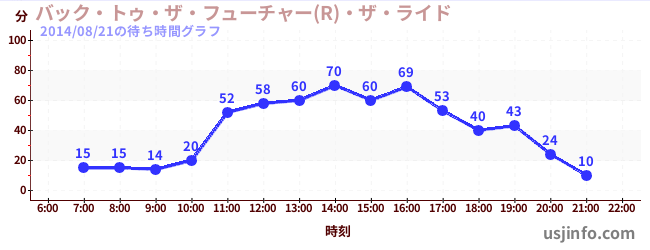 • バック・トゥ・ザ・フューチャー(R)・ザ・ライド$B$N(B2014年08月21日の待ち時間