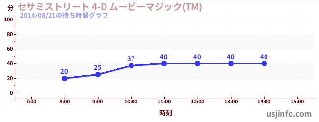 • セサミストリート 4-D ムービーマジック(TM)$B$N(B2014年08月21日の待ち時間