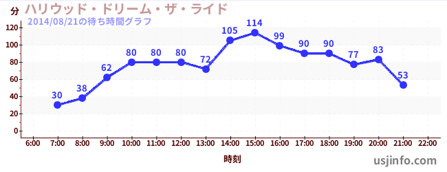 • ハリウッド・ドリーム・ザ・ライド$B$N(B2014年08月21日の待ち時間