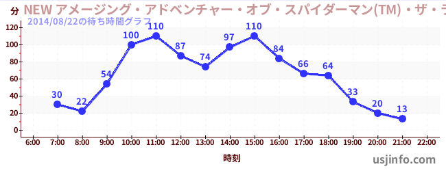 • NEW アメージング・アドベンチャー・オブ・スパイダーマン(TM)・ザ・ライド 4K3D$B$N(B2014年08月22日の待ち時間