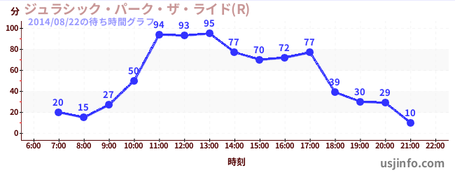 • ジュラシック・パーク・ザ・ライド(R)$B$N(B2014年08月22日の待ち時間