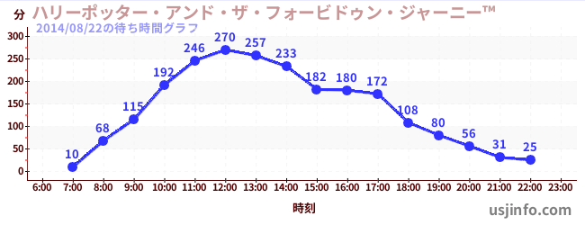 • ハリーポッター・アンド・ザ・フォービドゥン・ジャーニー™$B$N(B2014年08月22日の待ち時間