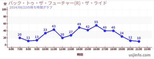 • バック・トゥ・ザ・フューチャー(R)・ザ・ライド$B$N(B2014年08月22日の待ち時間