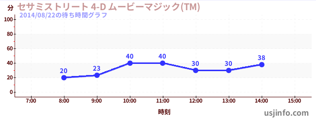 • セサミストリート 4-D ムービーマジック(TM)$B$N(B2014年08月22日の待ち時間