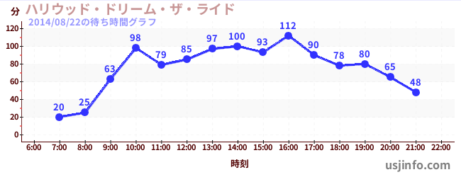 • ハリウッド・ドリーム・ザ・ライド〜バックドロップ〜$B$N(B2014年08月22日の待ち時間