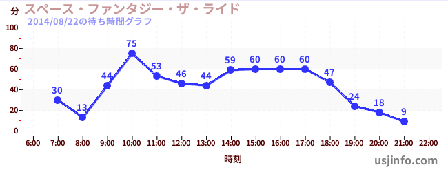 • スペース・ファンタジー・ザ・ライド$B$N(B2014年08月22日の待ち時間