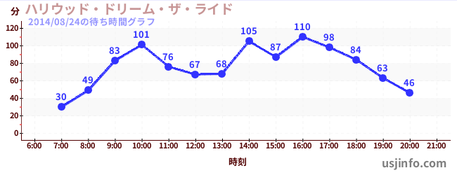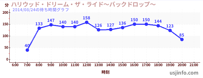 • ハリウッド・ドリーム・ザ・ライド〜バックドロップ〜$B$N(B2014年08月24日の待ち時間