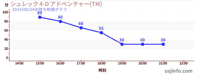 • シュレック 4-D アドベンチャー(TM)$B$N(B2014年08月24日の待ち時間