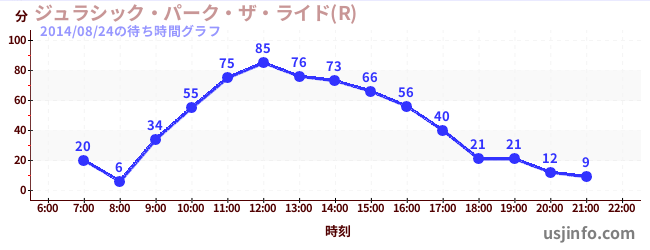 • ジュラシック・パーク・ザ・ライド(R)$B$N(B2014年08月24日の待ち時間