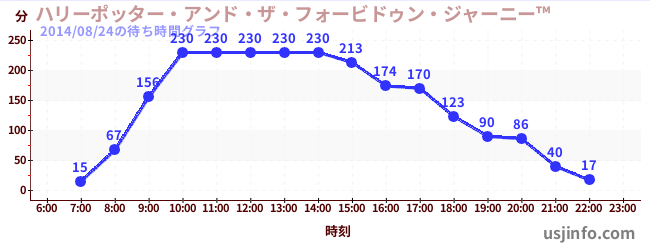 • ハリーポッター・アンド・ザ・フォービドゥン・ジャーニー™$B$N(B2014年08月24日の待ち時間
