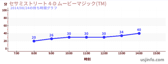 • セサミストリート 4-D ムービーマジック(TM)$B$N(B2014年08月24日の待ち時間