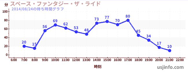 • スペース・ファンタジー・ザ・ライド$B$N(B2014年08月24日の待ち時間