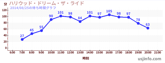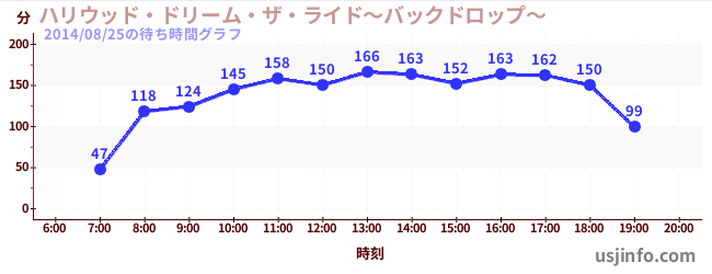 • ハリウッド・ドリーム・ザ・ライド〜バックドロップ〜$B$N(B2014年08月25日の待ち時間