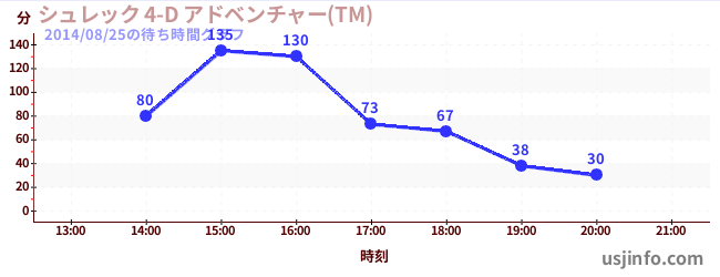 • シュレック 4-D アドベンチャー(TM)$B$N(B2014年08月25日の待ち時間