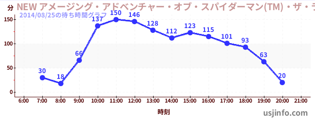 • NEW アメージング・アドベンチャー・オブ・スパイダーマン(TM)・ザ・ライド 4K3D$B$N(B2014年08月25日の待ち時間
