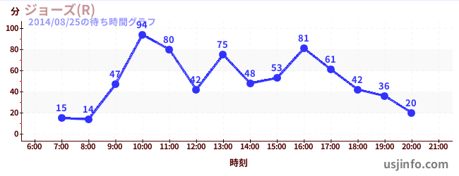 • ジョーズ(R)$B$N(B2014年08月25日の待ち時間