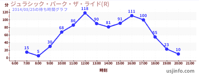 • ジュラシック・パーク・ザ・ライド(R)$B$N(B2014年08月25日の待ち時間