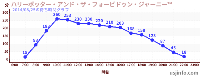 • ハリーポッター・アンド・ザ・フォービドゥン・ジャーニー™$B$N(B2014年08月25日の待ち時間