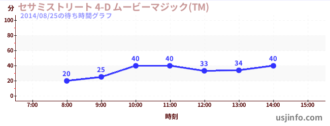 • セサミストリート 4-D ムービーマジック(TM)$B$N(B2014年08月25日の待ち時間