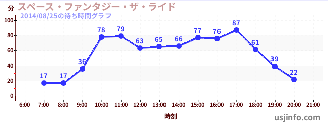 • スペース・ファンタジー・ザ・ライド$B$N(B2014年08月25日の待ち時間