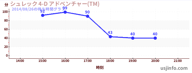 • シュレック 4-D アドベンチャー(TM)$B$N(B2014年08月26日の待ち時間