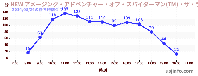 • NEW アメージング・アドベンチャー・オブ・スパイダーマン(TM)・ザ・ライド 4K3D$B$N(B2014年08月26日の待ち時間