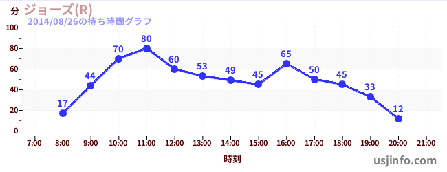 • ジョーズ(R)$B$N(B2014年08月26日の待ち時間