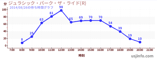 • ジュラシック・パーク・ザ・ライド(R)$B$N(B2014年08月26日の待ち時間