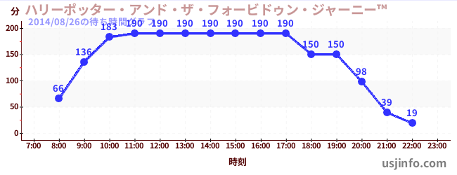 • ハリーポッター・アンド・ザ・フォービドゥン・ジャーニー™$B$N(B2014年08月26日の待ち時間