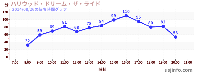 • ハリウッド・ドリーム・ザ・ライド$B$N(B2014年08月26日の待ち時間