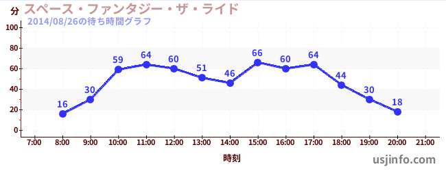 • スペース・ファンタジー・ザ・ライド$B$N(B2014年08月26日の待ち時間