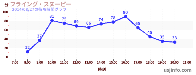 • フライング・スヌーピー$B$N(B2014年08月27日の待ち時間