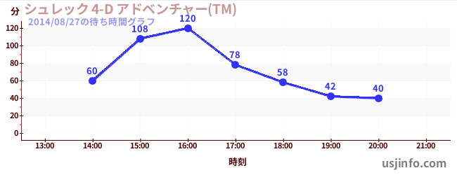 • シュレック 4-D アドベンチャー(TM)$B$N(B2014年08月27日の待ち時間