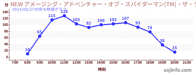 • NEW アメージング・アドベンチャー・オブ・スパイダーマン(TM)・ザ・ライド 4K3D$B$N(B2014年08月27日の待ち時間