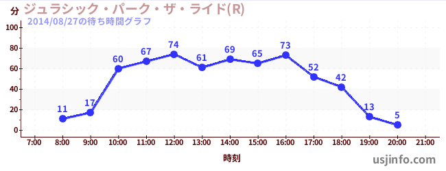 • ジュラシック・パーク・ザ・ライド(R)$B$N(B2014年08月27日の待ち時間