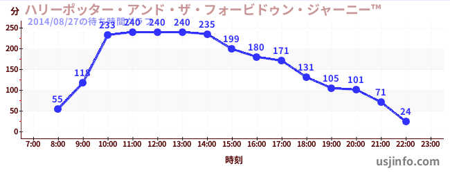• ハリーポッター・アンド・ザ・フォービドゥン・ジャーニー™$B$N(B2014年08月27日の待ち時間