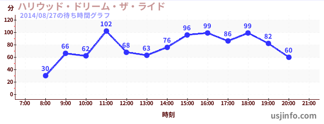 • ハリウッド・ドリーム・ザ・ライド〜バックドロップ〜$B$N(B2014年08月27日の待ち時間