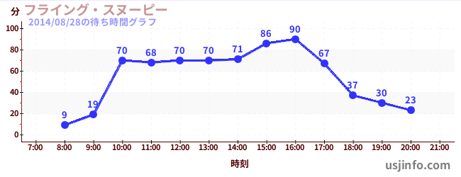 • フライング・スヌーピー$B$N(B2014年08月28日の待ち時間