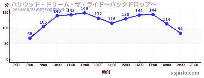 • ハリウッド・ドリーム・ザ・ライド〜バックドロップ〜$B$N(B2014年08月28日の待ち時間