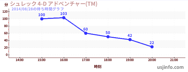 • シュレック 4-D アドベンチャー(TM)$B$N(B2014年08月28日の待ち時間