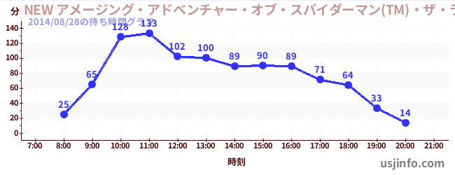• NEW アメージング・アドベンチャー・オブ・スパイダーマン(TM)・ザ・ライド 4K3D$B$N(B2014年08月28日の待ち時間