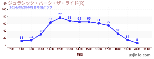 • ジュラシック・パーク・ザ・ライド(R)$B$N(B2014年08月28日の待ち時間