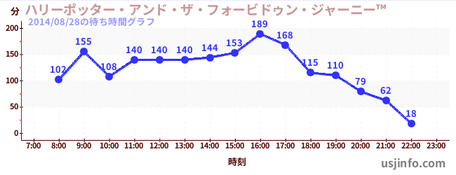 • ハリーポッター・アンド・ザ・フォービドゥン・ジャーニー™$B$N(B2014年08月28日の待ち時間