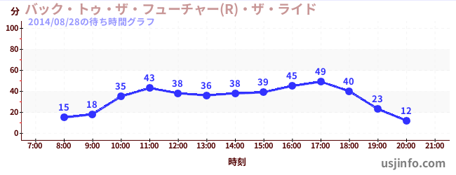• バック・トゥ・ザ・フューチャー(R)・ザ・ライド$B$N(B2014年08月28日の待ち時間