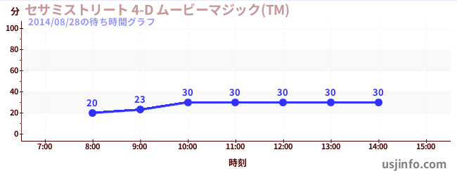 • セサミストリート 4-D ムービーマジック(TM)$B$N(B2014年08月28日の待ち時間