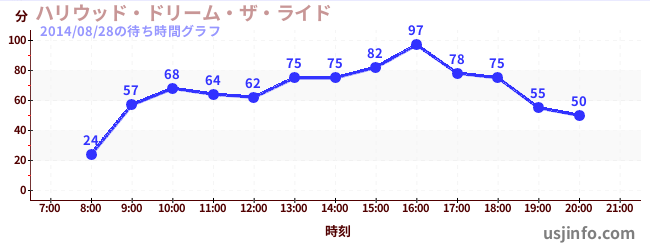 • ハリウッド・ドリーム・ザ・ライド$B$N(B2014年08月28日の待ち時間