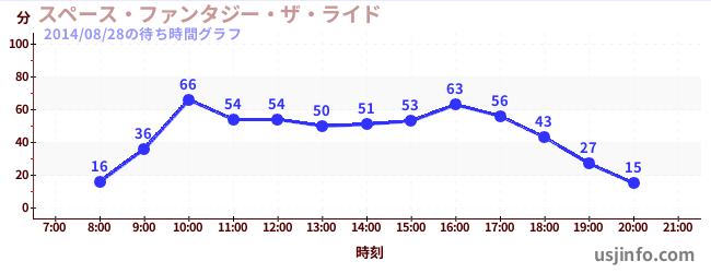 • スペース・ファンタジー・ザ・ライド$B$N(B2014年08月28日の待ち時間