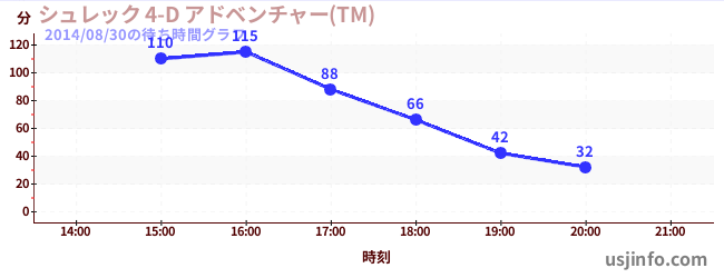 • シュレック 4-D アドベンチャー(TM)$B$N(B2014年08月30日の待ち時間