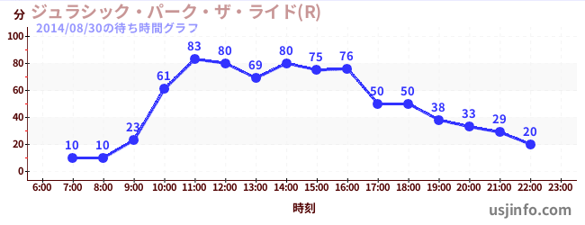 • ジュラシック・パーク・ザ・ライド(R)$B$N(B2014年08月30日の待ち時間